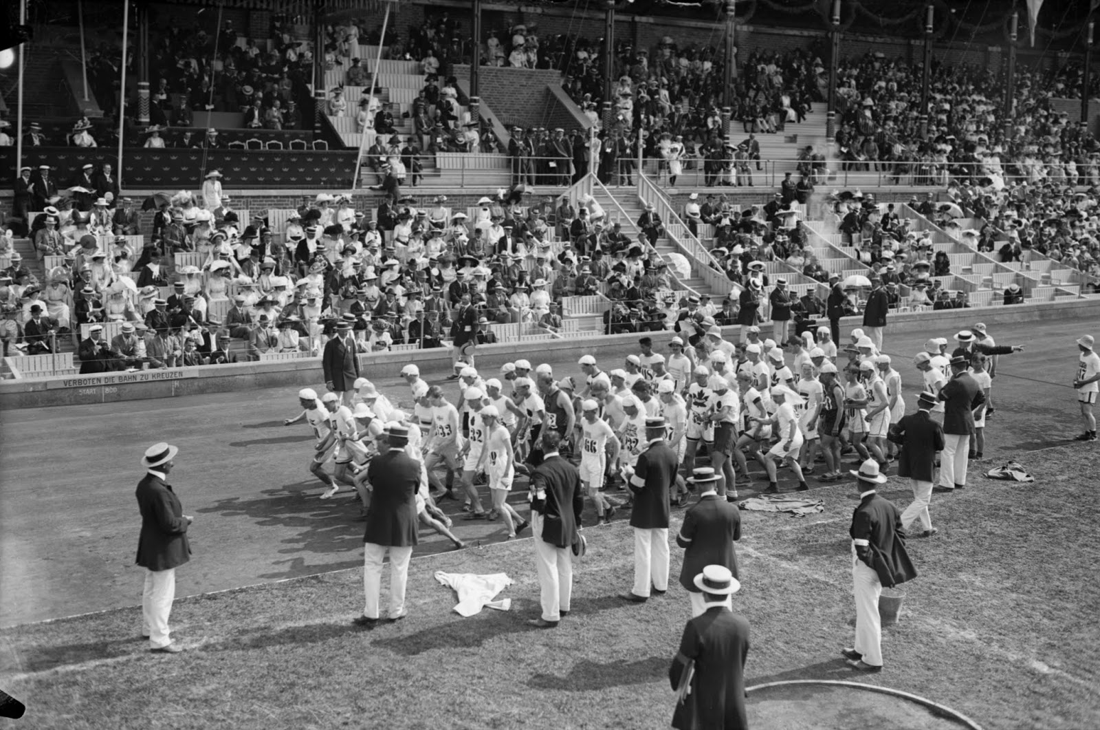 ..a partida no Stockholms Stadion para a corrida da Maratona Olímpica às 13.48 horas, do dia 14 de Julho de 1912